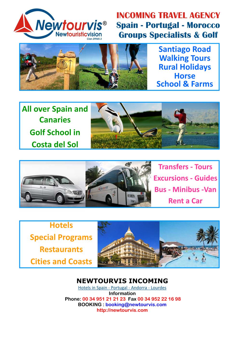 We are currently updating and improving our website. You can contact through the following means: Phone: (+34) 952 12 00 92 (+34) 951 21 21 23 Fax: (+34) 952 22 16 98 Email: booking@newtourvis.com